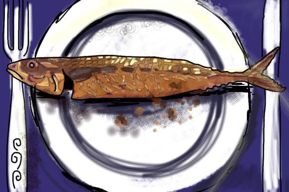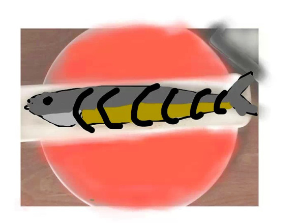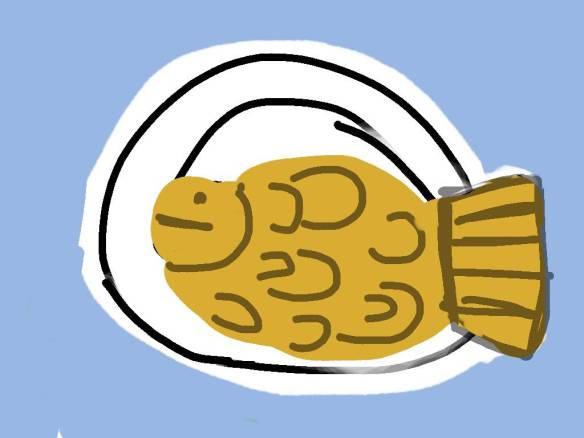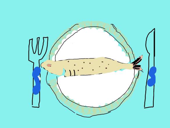Ik had een gestoomde als voorbeeld makreel meegenomen. De kinderen konden, als ze dat wilden een foto van de makreel maken, om vervolgens op de foto te tekenen. Zo heb ik het ook bij mijn voorbeeld gedaan.