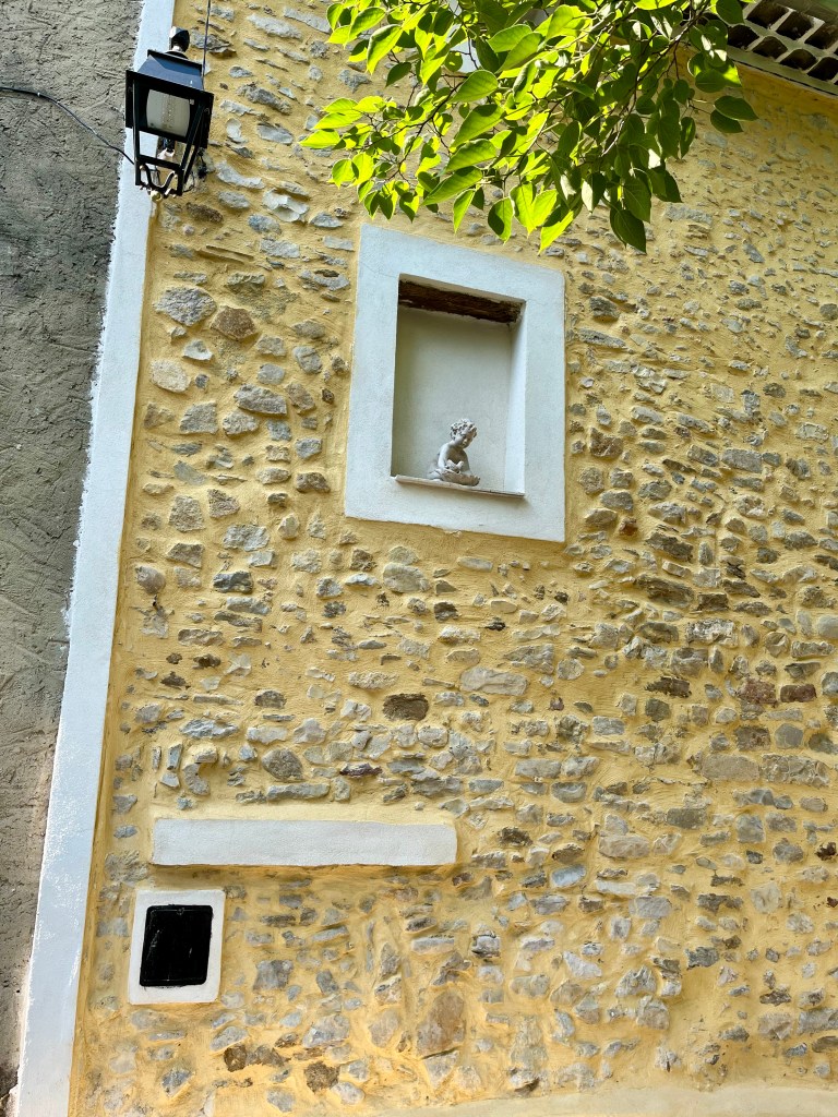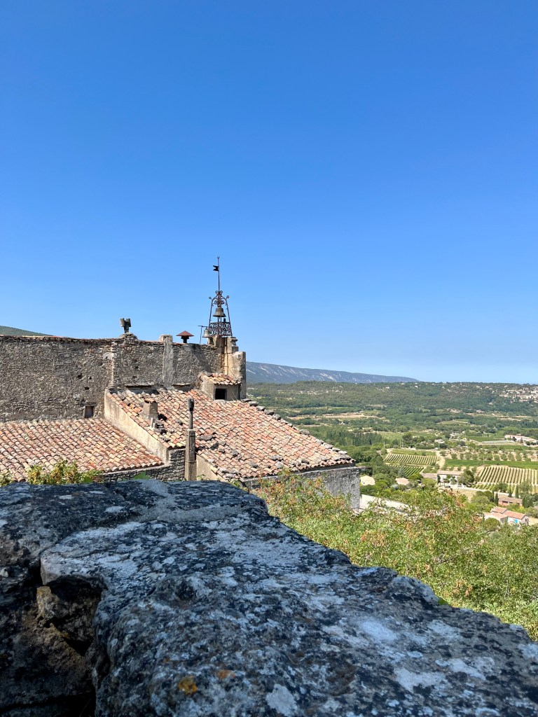 De wandeling naar Bonnieux duurde ongeveer een uur. Het plaatsje is gebouwd op een heuvel. De straatjes zijn er smal en dus heerlijk koel. Na veel kronkelingen door steegjes, tunnel-achtige straatjes komen we bovenop de heuvel in een ommuurd parkje.
