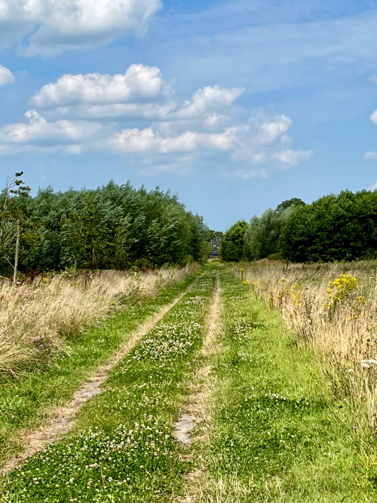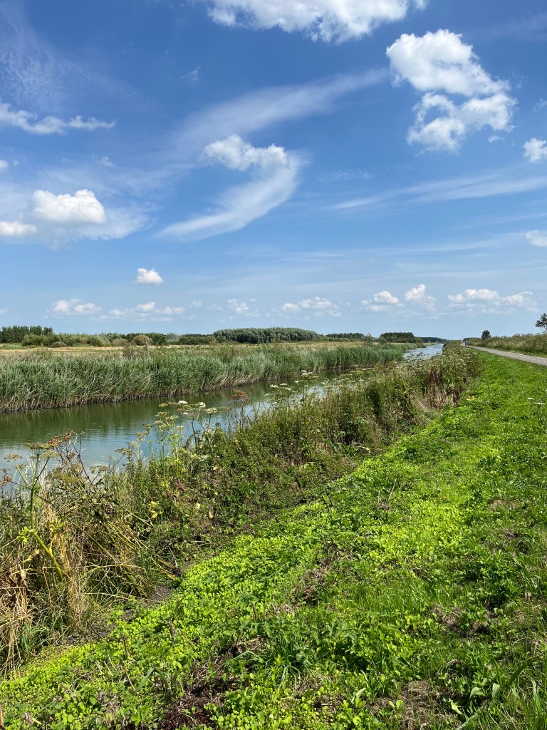 De stad komt weer in zicht. Ik kijk nog een keer om richting Noord Aa. Het zal nog steeds warm zijn in huis maar morgen is dat over net als de mooie blauwe luchten die ik heb vastgelegd.
