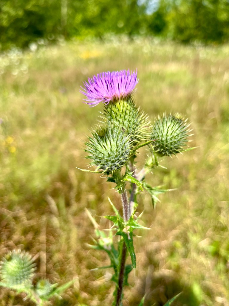 De bramen zien er rijp uit maar zijn nog zuur. Overal zie je pluizen van de distels, hier een daar staat er nog een in bloei. Op de golfbaan kun je bij Roest op het terras wat drinken of verderop bij Landwinkel Sonneveld. Waar je ook heerlijke kaas kunt kopen en streekproducten.