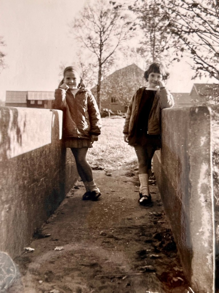 Nu fietsen we regelmatig langs de Mark, heerlijk rustig en het uitzicht is zeker zo mooi als dat op de Markt in Zoetermeer. Als ik voor mijn boodschappen door de Dorpstraat loop, is het alsof de straatstenen mij nog kennen van mijn dagelijkse wandeling naar de Mariaschool. Maar soms ben ik echt de weg kwijt. Zo heb ik dagenlang gezocht naar een bruggetje over de Chaamse beek. Mijn vader heeft daarvan een foto gemaakt terwijl mijn nichtje en ik er als twee volleerde modellen op poseren.