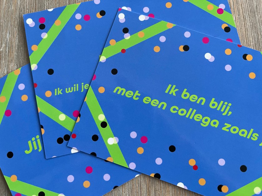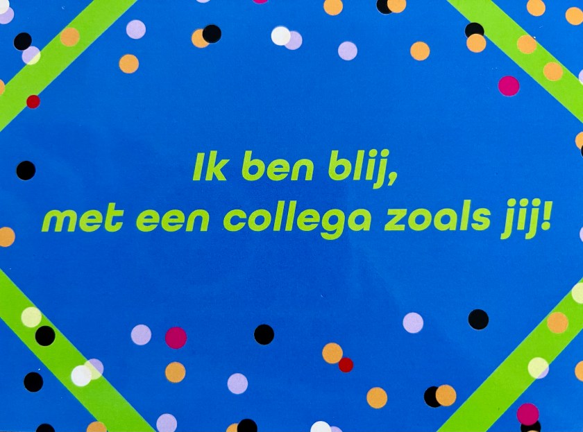 Het werd een mooi afscheid van De Binnenbaan. Lieve woorden, een lach, een traan en onverwachte cadeau’s. Een kookboekje met ieders favoriete recept, een broodtrommeltje met mijn eigen logo en fijn leeswerk.