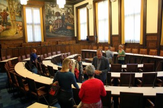 Toch hadden we maar kort aandacht voor het gebouw. Het Grote Uitwisselen begon direct. Als griffie ben je binnen de ambtelijke organisatie een beetje een vreemde eend. We werken niet voor het college maar voor de raad en dat maakt echt verschil. Kom je collega’s van andere griffies tegen dan is er een feest der herkenning en is het: