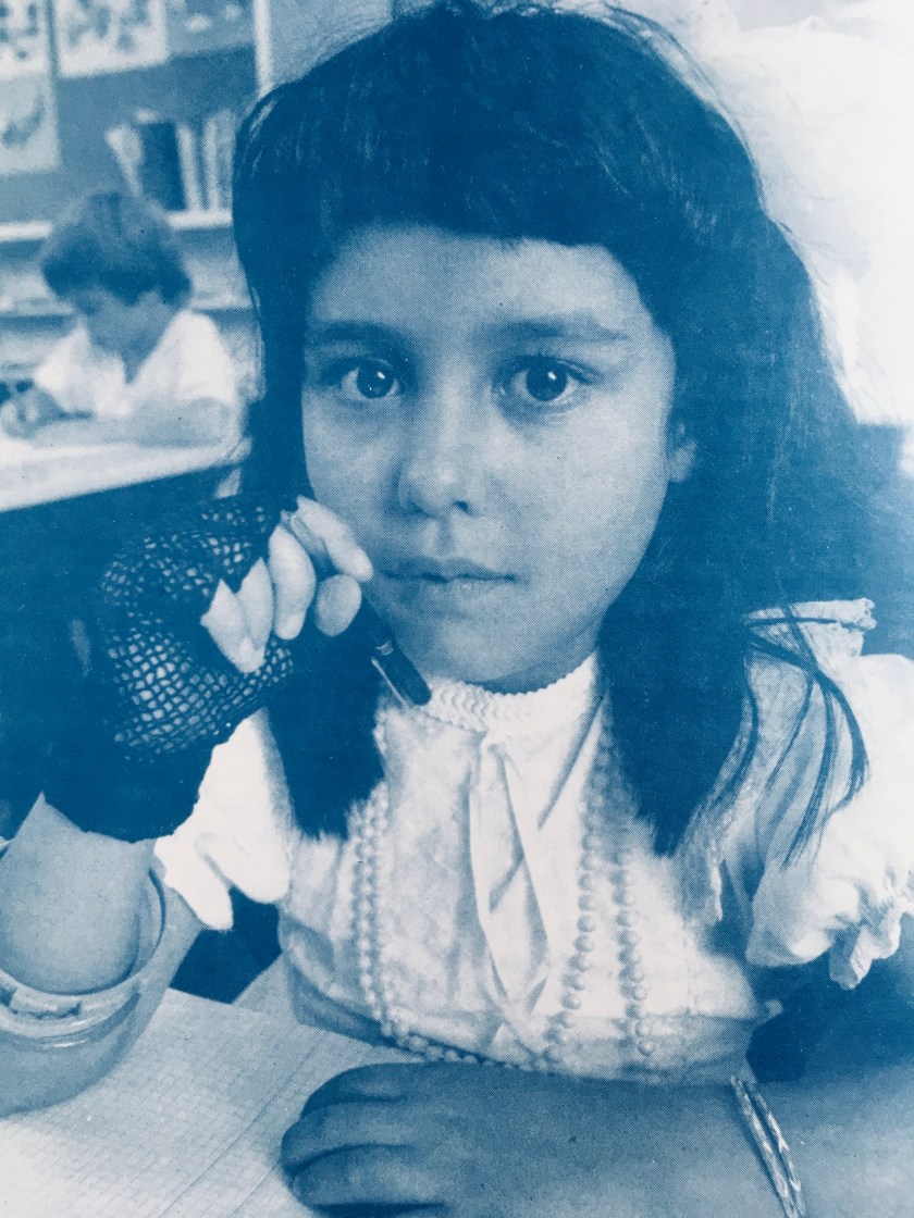 Ineens dacht ik weer aan haar. Ergens in 1994 zocht ik in het beeldarchief van de gemeente Dordrecht naar foto’s voor bij een beleidsnota. Daar vond ik de foto van dit meisje. De aarzelende ernstige blik in haar ogen brak bijna mijn hart. Ze kwam paginagroot in de nota terecht.