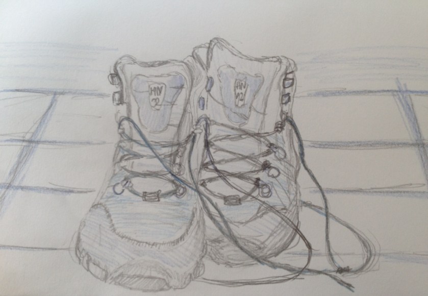 Op het bed in mijn hotelkamer strik de veters van mijn bergschoenen. Ik zie de blikken van de Eindhovense dames al gaan, ze zien er veel te nieuw uit. Daar heb ik natuurlijk wel een antwoord op. Na jaren trouwe dienst waren mijn oude schoenen tot op het draad versleten. Maar over blaren op mijn voeten kan ik natuurlijk niet gaan klagen. De pijn zal er voor zorgen dat mijn charmantste glimlach verandert in een verbeten grijns.
